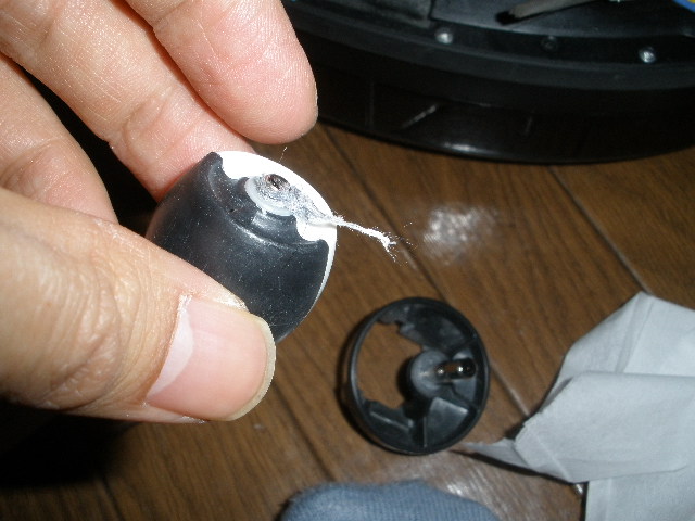 | さらに車輪を取ってみると、糸くずが絡まっています。 |